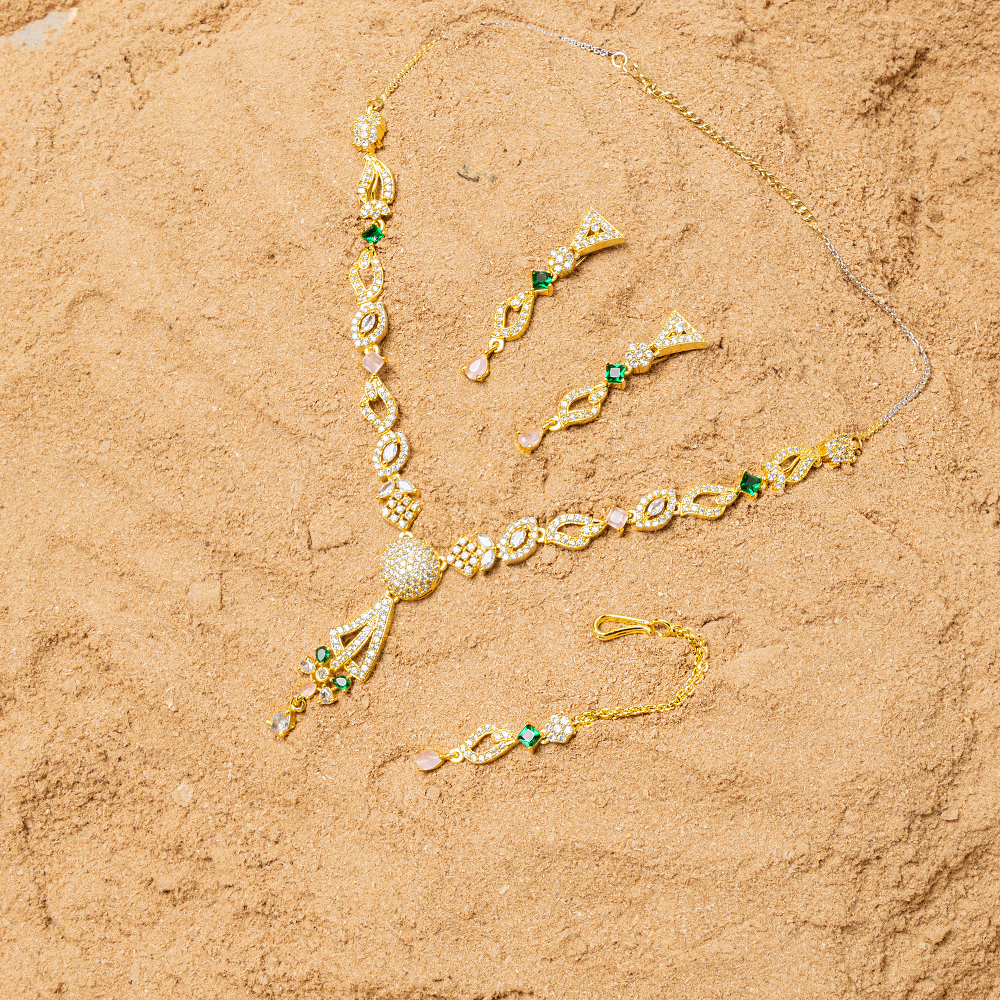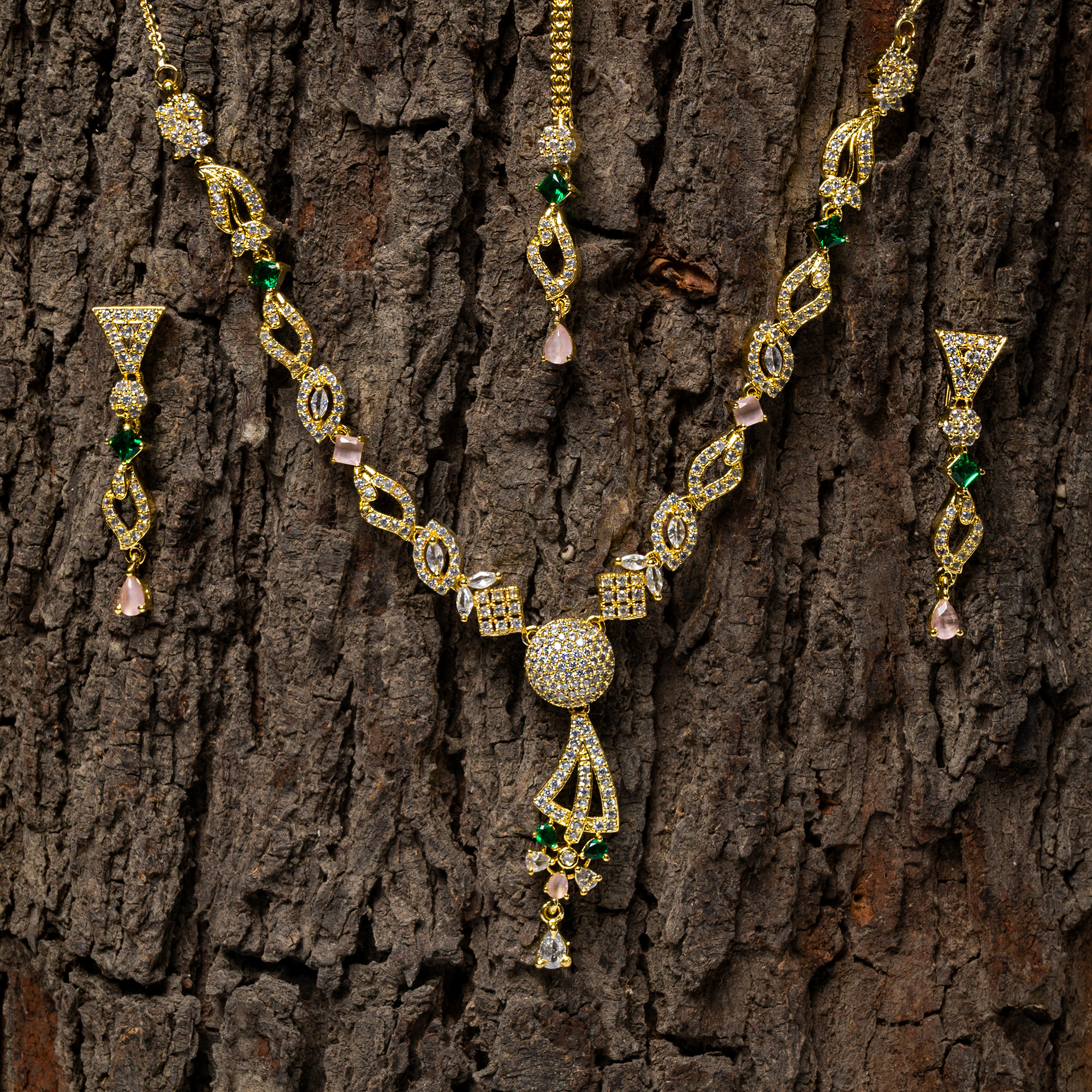 Make your look on fire with this stunning necklace set. These eye-catching sets are sure to glamour your wedding event or others.